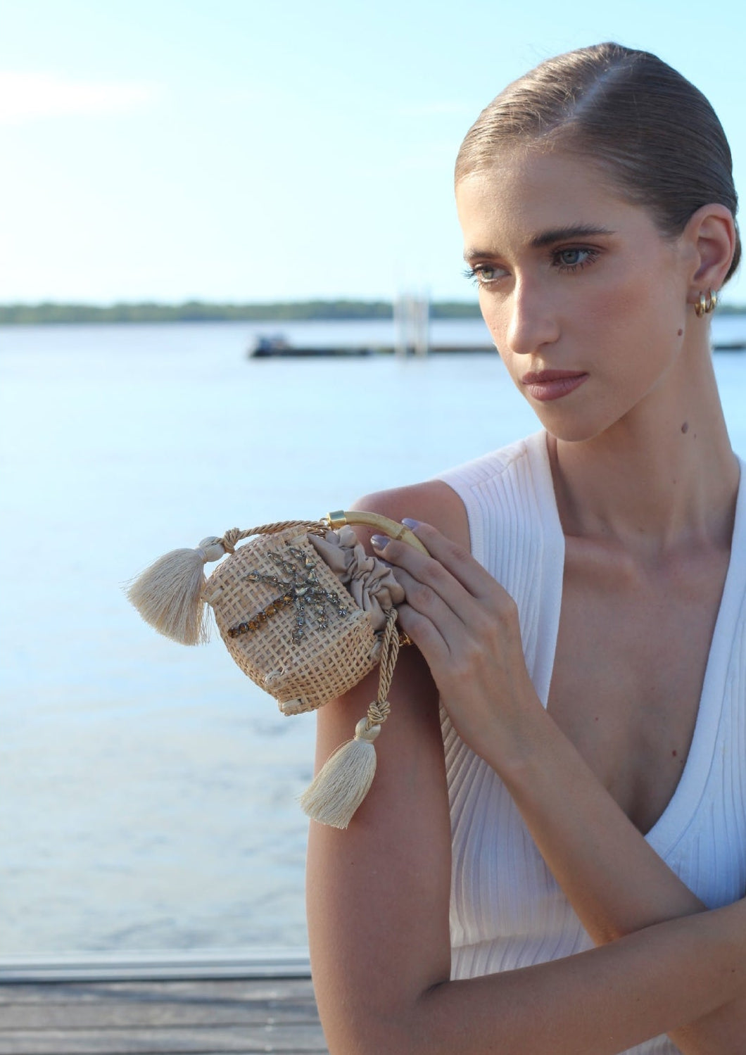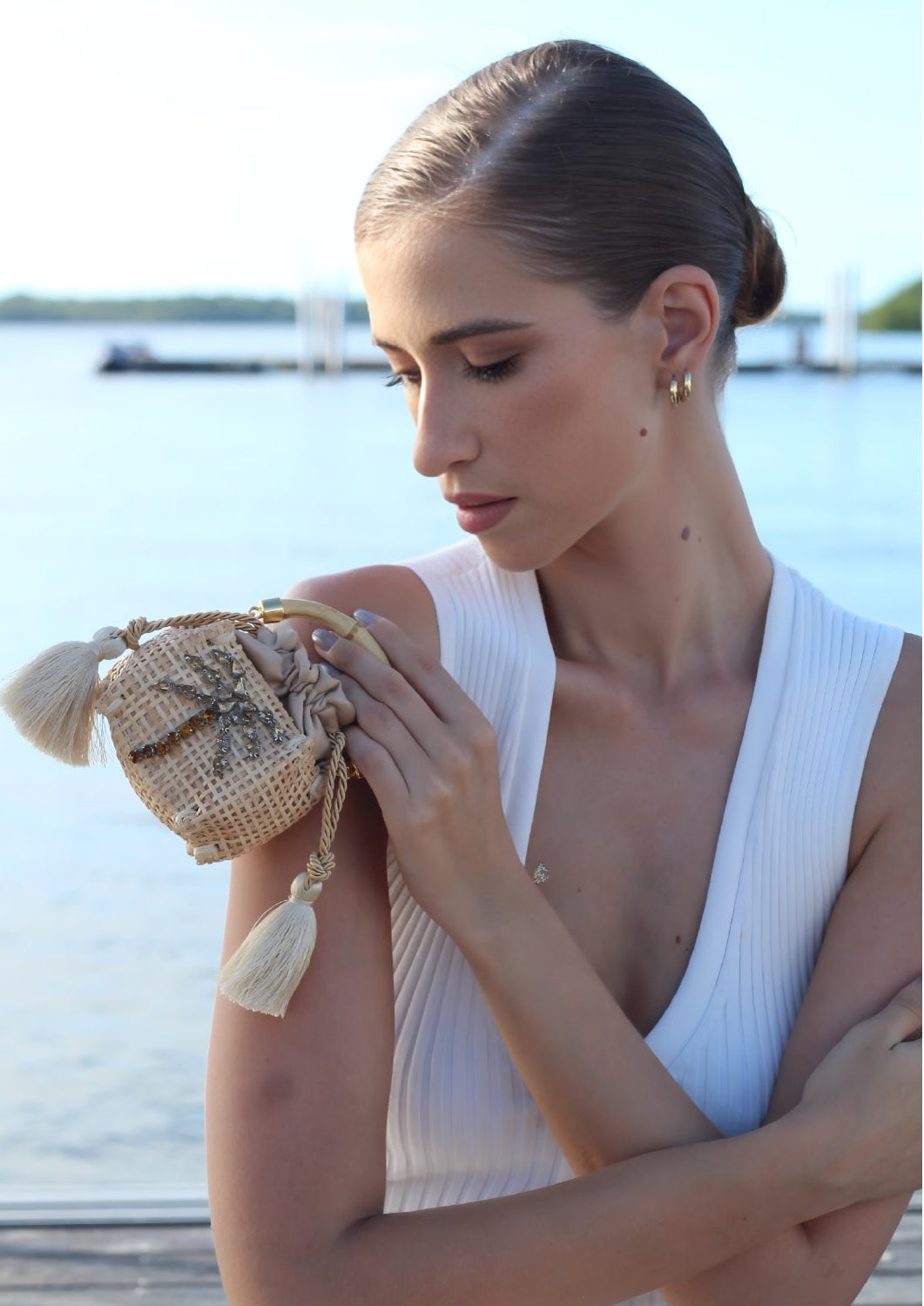 BAMBU NATURAL E UMA LONGA ALÇA DE OMBRO DE TORÇAL REMOVÍVEL QUE