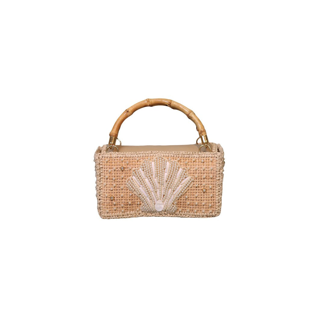 A CLUTCH CONCHIGLIA É FEITA COM FIBRAS NATURAIS DE RATTAN E PALHA DE BURITI. ESTA BOLSA POSSUI MICRO CONTAS DE PÉROLAS, MINI CRISTAIS E UM BORDADO EM RÁFIA NO FORMATO DE UMA CONCHA, TODOS CUIDADOSAMENTE COSTURADOS À MÃO. POSSUI O INTERNO REVESTIDO EM COURO NATURAL, COM UMA TAMPA DE COURO COM FECHAMENTO DE BOTÃO ÍMÃ À PRESSÃO, ALÇAS DE MÃO EM BAMBU NATURAL E UMA ALÇA DE OMBRO REMOVÍVEL, DE COURO NATURAL.