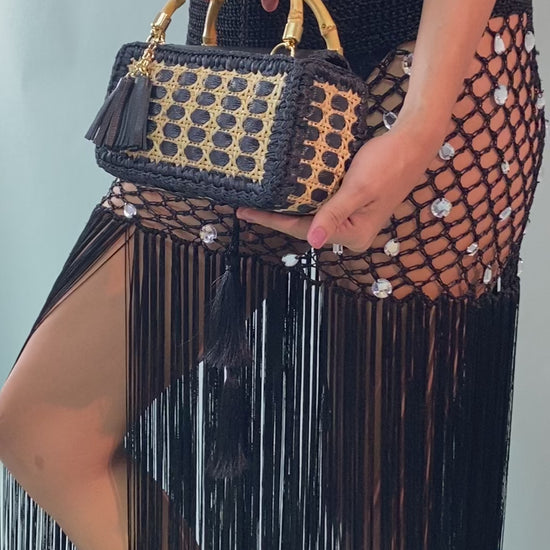 ESSE DESIGN DE BOLSA CLÁSSICA E ELEGANTE É FEITO DE FIBRA NATURAL DE RATTAN, UNIDA POR CROCHÊ DE RAFIA E EMBELEZADO POR TIRAS DE COURO CORTADAS À MÃO, ENTRELAÇADAS NA BOLSA. A TAMPA É DE COURO COM FECHAMENTO DE BOTÃO ÍMÃ À PRESSÃO. POSSUI ALÇAS DE MÃO DE BAMBU E UMA ALÇA DE OMBRO REMOVÍVEL, DE METAL DOURADO COM BANHO. POSSUI TODO O INTERNO REVESTIDO EM COURO NATURAL COM BOLSO EM CROCHET. PINGENTE COM MINI TÁSSEIS EM COURO NATURAL REMOVÍVEL. DISPONÍVEL NAS CORES WHITE, MINT GREEN, BLACK, BEIGE, BABY PINK, BABY BLUE.