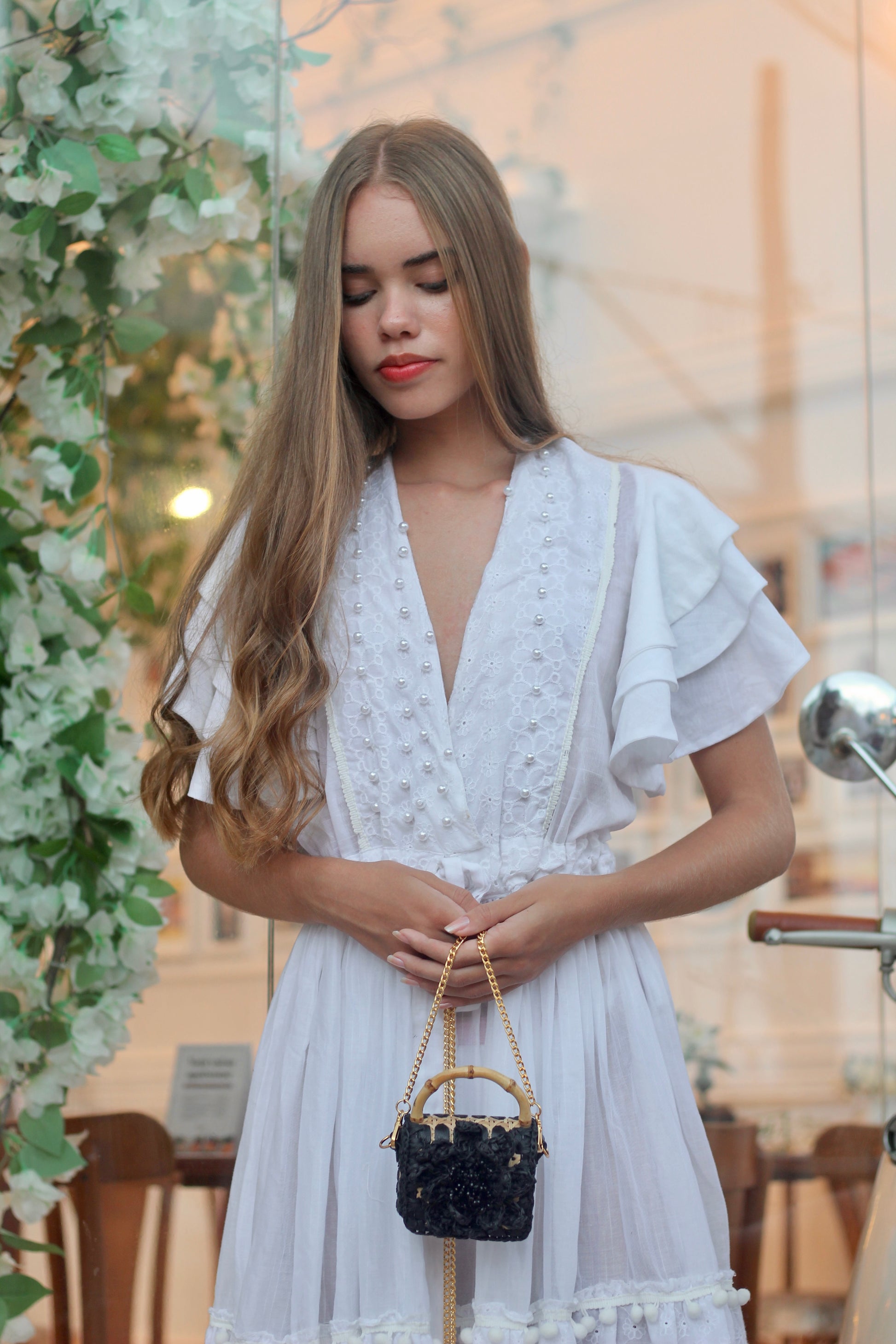 AS BABIES SÃO JÓIAS LINDAS E DE VÁRIOS ESTILOS, E PODEM SER USADAS DE MUITAS FORMAS: NA TRANSVERSAL, NA CINTURA OU ATÉ MESMO COMO UM ADEREÇO. ESSE MODELO POSSUI UMA FLOR DE CROCHÊ EM RÁFIA COM FIOS DE CRISTAIS TCHECOS, QUE O COMPLETA COM UM BRILHO ESPECIAL. PRODUZIDA COM RATTAN E COURO NATURAL, COM ACABAMENTO EM CROCHÊ COM RÁFIA, E FECHAMENTO COM BOTÃO DE PRESSÃO. A ALÇA DE MÃO É DE BAMBU NATURAL, E A DE OMBRO DE METAL COM BANHO. DISPONÍVEL NAS CORES WHITE, BLACK, SILVER E BEIGE.