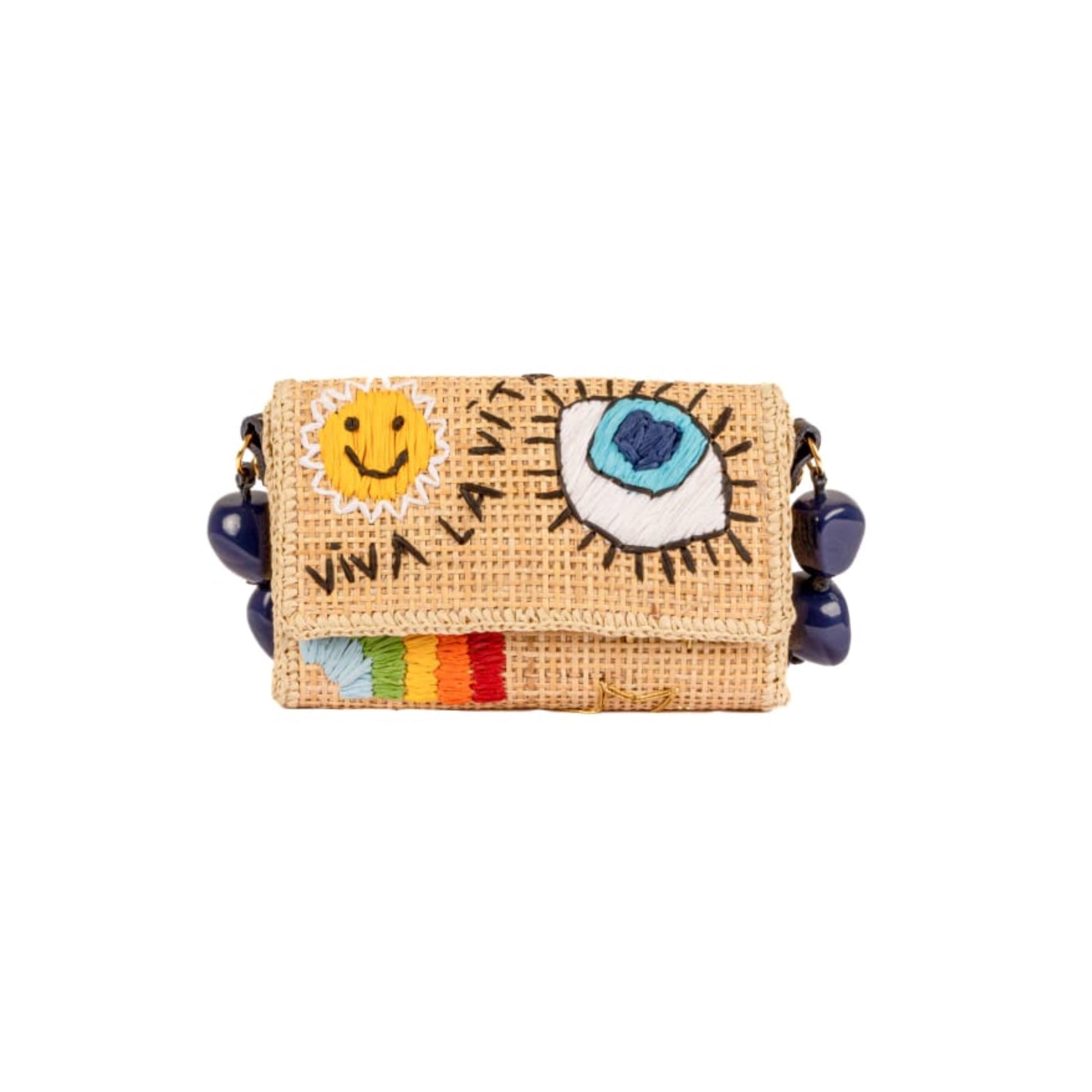 CLUTCH EM PALHA NATURAL RATTAN, E POSSUI BORDADO MANUAL DE VÁRIOS ELEMENTOS COM RÁFIA. VEM ACOMPANHADA DE ALÇA DE MÃO REMOVÍVEL EM RESINA E UMA ALÇA DE OMBRO AJUSTÁVEL E REMOVÍVEL DE TORÇAL. POSSUI FORRO EM VELUDO E FECHAMENTO COM BOTÃO DE PRESSÃO.