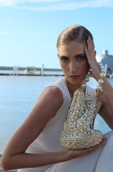 COM PÉROLAS DE RESINA. POSSUI ALÇA DE MÃO EM PÉROLAS DE RESINA E