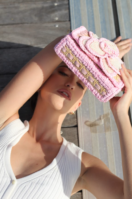 UNIDAS POR CROCHÊ DE RÁFIA E EMBELEZADO COM TIRAS DE COURO
