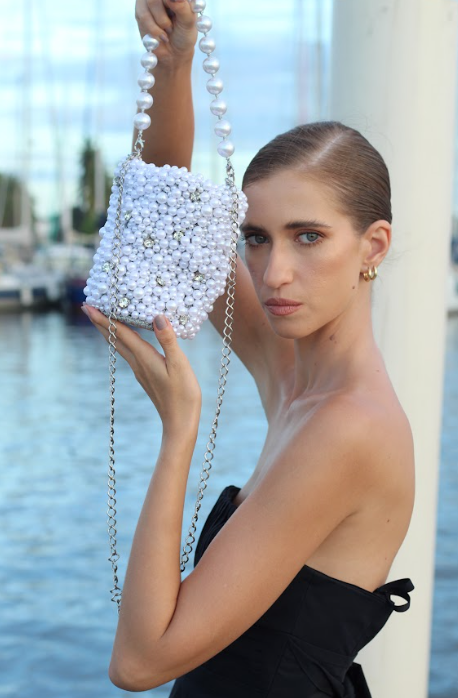 POSSUI ALÇA DE MÃO EM PÉROLA DE RESINA, ALÇA DE OMBRO