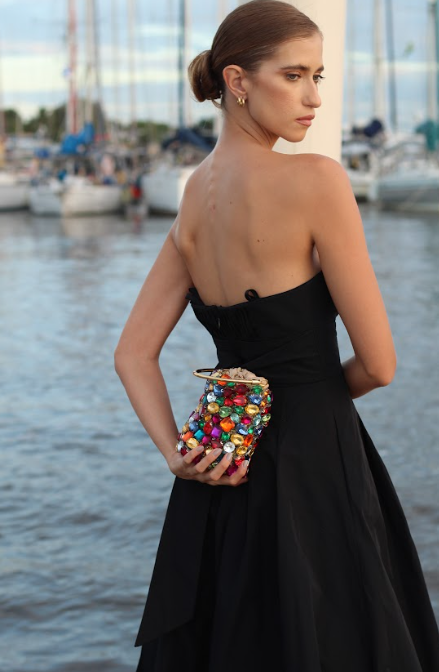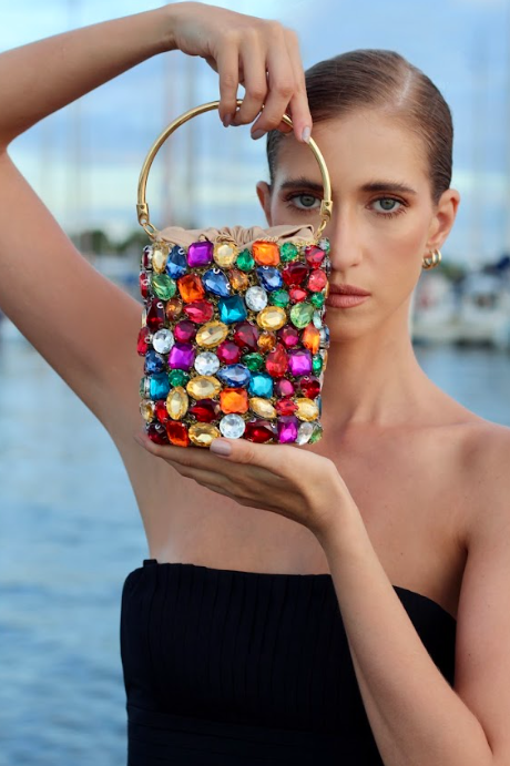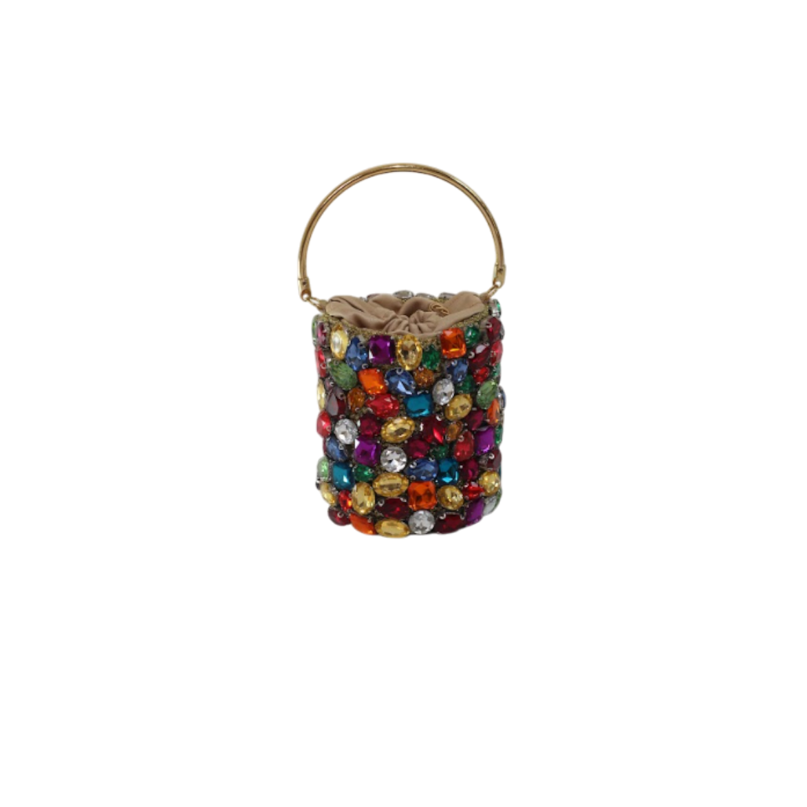 ADORNADA COM CRISTAIS DE VÁRIOS FORMATOS E CORES, FIXADOS EM