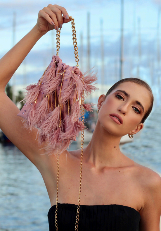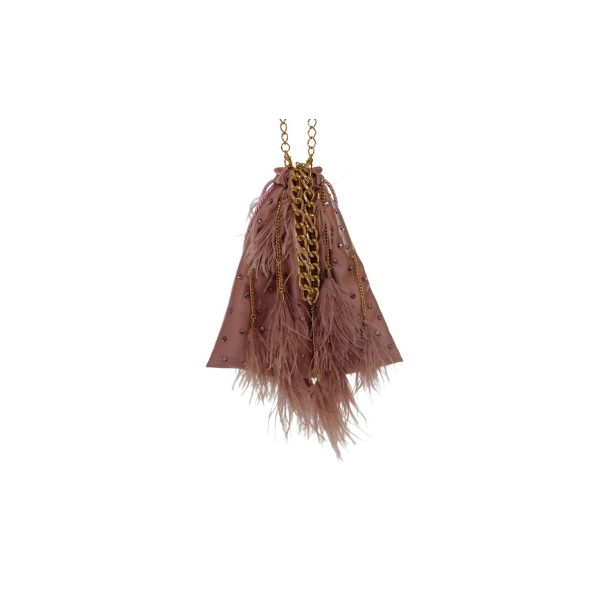 BOLSA DE CETIM COM APLICAÇÃO DE MINI CRISTAIS TCHECOS POSSUI