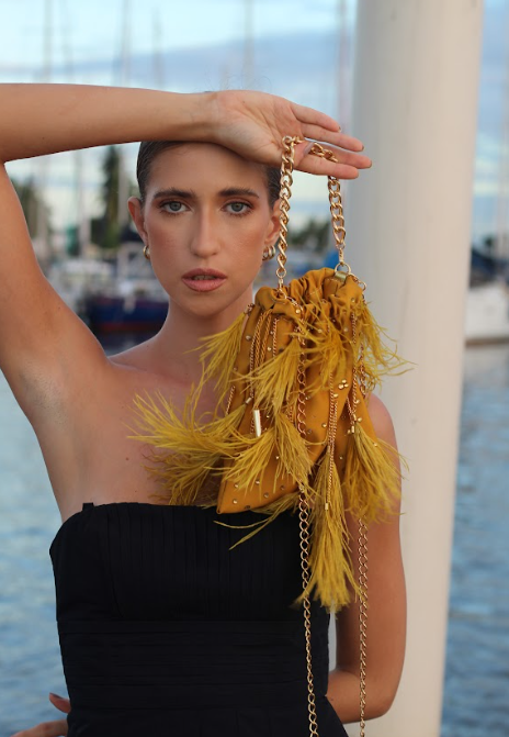OMBRO REMOVÍVEL TAMBÉM COM BANHO DOURADO. FORRO EM CETIM.